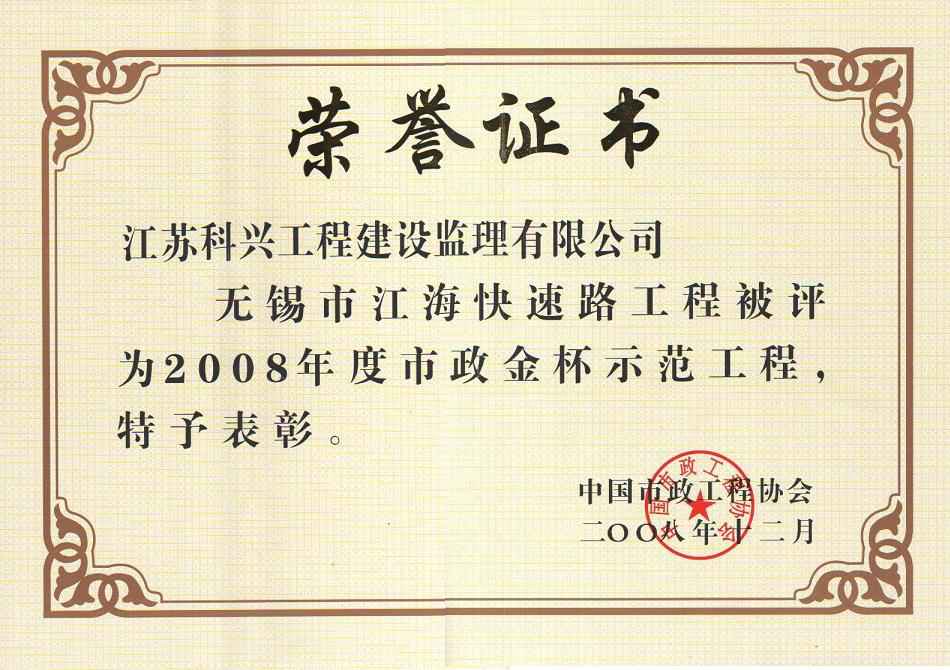 > 企业荣誉 > 市政金杯奖