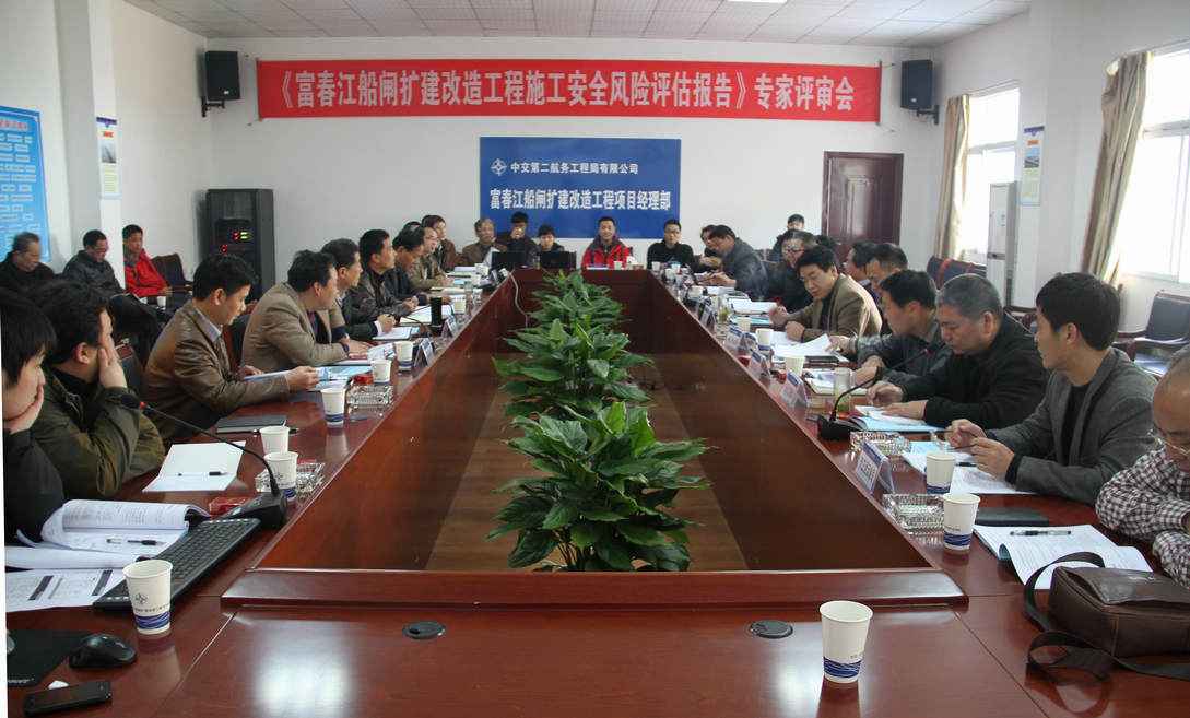 2013年3月5日,富春江船闸扩建改造工程总监办组织召开了施工安全风险评估报告专家审查会。会议除了特邀审查报告的专家外,还邀请了浙江省交通运输厅质监局、浙江省港航管理局、杭州市安全生产监督管理局、杭州市政府应急管理办公室、杭州市交通运输局、杭州市交通工程质安局等相关领导参会。