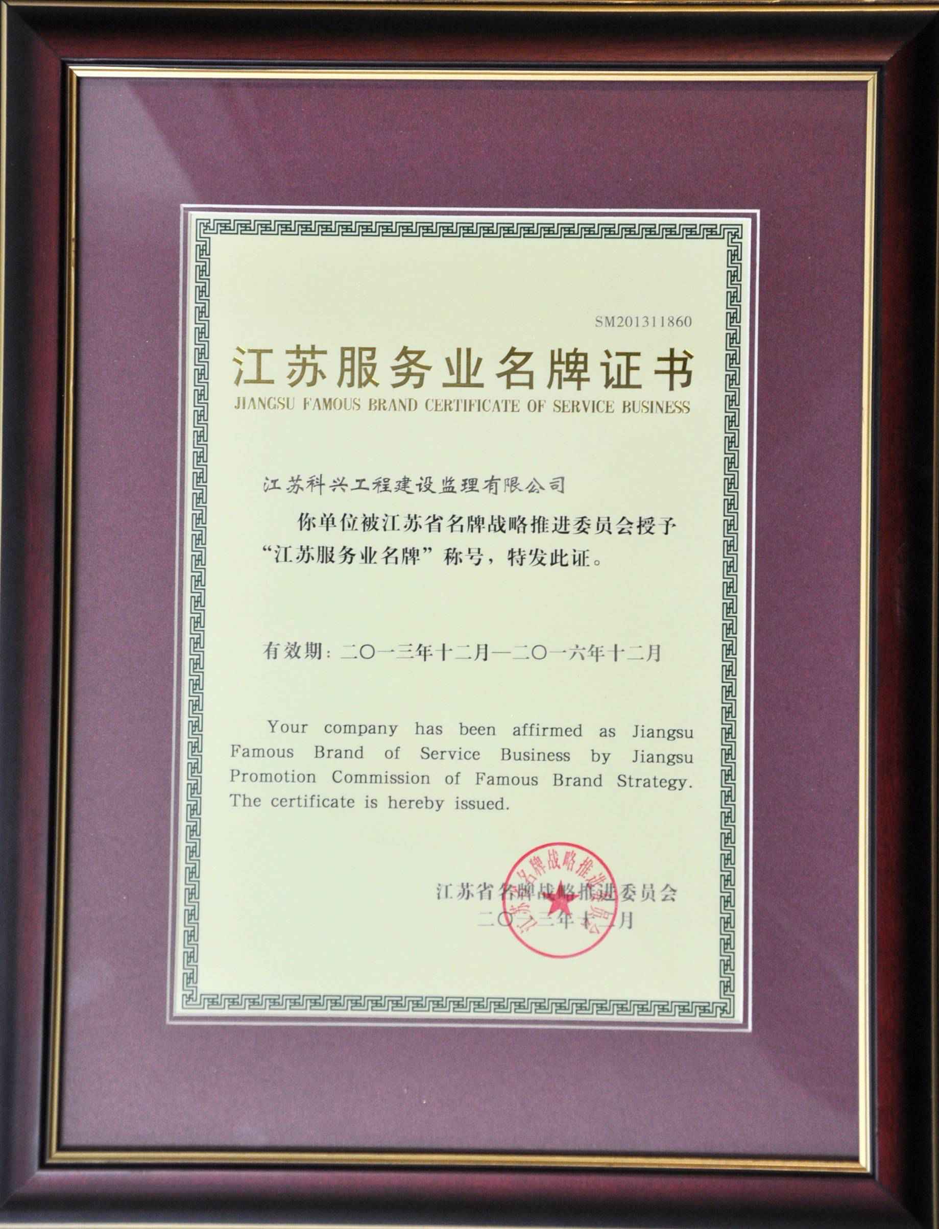| 江苏乐鱼(中国)监理有限公司荣获“江苏服务业名牌企业”称号 | |