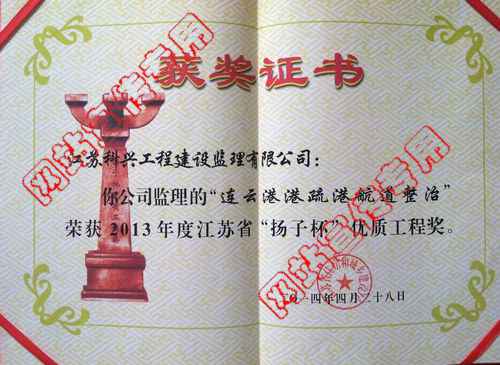 当前位置:首页 > 企业荣誉 > 连云港疏港航道工程“扬子杯”
