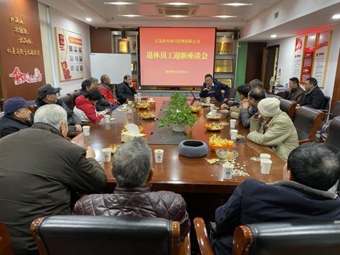 鼠年将至,在这辞旧迎新之际,为丰富公司退休职工的业余生活,让退休员工及时了解公司经营发展现状,广纳前辈们对公司发展的锦囊妙计,让他们深切感受老有所养、老有所依的公司关怀,重温来自公司大家庭的温暖,江苏乐鱼(中国)于20191221日下午,组织开展了退休职工迎新座谈会活动。活动由公司副总经理孙宇主持,公司总经理徐志峰出席座谈会。