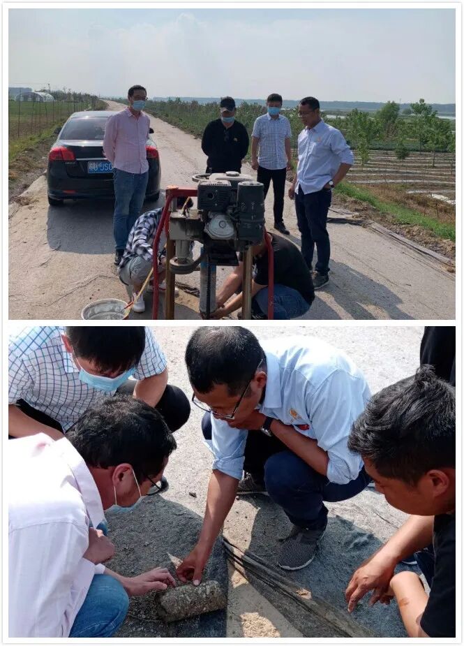 经排查研究发现,水稳压实度达不到设计要求的根本原因是,受疫情影响,市场上所能提供的石子压碎值略偏低大(但实测压碎值满足规范要求),干密度取值偏大,生产配合比未及时按照实际含水量调整以及运输中存在部分离析等。对于试铺中水稳压实度不足问题,公司专家经过召开多次专题会议,与施工单位共同改进施工方案,调整原材料和生产配合比,改进施工措施等,并结合现场取芯芯样完整性、抗压强度、含水率、水泥剂量检测,使问题得到圆满解决,试验结果满足设计和规范要求,为保证大面积施工提供了坚实的技术保障。