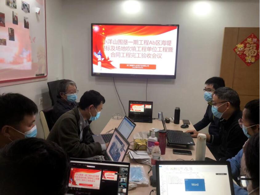 受上海疫情影响,经舟山市水利围垦工程质量监督站同意,此次完工验收会议以线上视频会议形式召开。会议由建设单位会同相关责任单位成立验收工作组,利用监控查看了工程实体建设情况,线上审阅了工程建设档案资料,并听取了各参建单位专题汇报。经验收工作组评审,一致同意小洋山Ab区工程质量合格、资料完备,达到验收条件,同意项目完工验收。