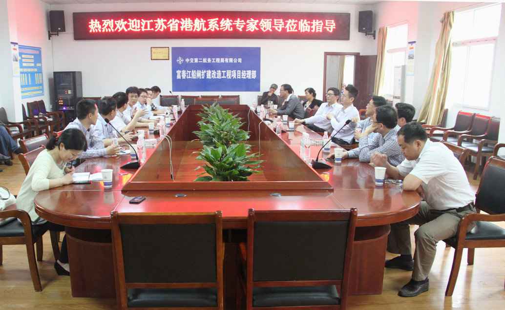2013515日下午1430分,江苏省航道局董文虎局长、黄岩副局长、丰玮副局长及苏州、无锡、常州、镇江航道处负责人等一行十余人在公司常务副总经理徐志峰陪同下莅临富春江船闸扩建改造工程进行考察调研。