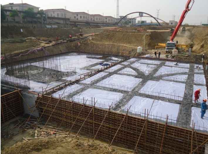上闸首底板属于大体积混凝土施工,分为东、西两侧,底板尺寸为2×54.4×28.8×2.6m(线数×底板长××厚度),混凝土分六次浇筑,方量累计达到7000方,施工采用泵车输送,阶梯式浇筑,分层振捣,收面平整,混凝土采取土工布、绒毯覆盖,定时洒水,养护及时。浇筑前监理组对大体积混凝土质量通病防治、质量安全保证措施等方面对项目部认真交底,并就钢筋保护层厚度控制,进行现场逐个检查验收,浇筑过程中旁站监理实行三班倒,每昼夜定时对混凝土里表温差进行查看,每半天进行一次的沉降观测,切实保证工程质量一直处于受控状态。(锡澄运河陈华荣)