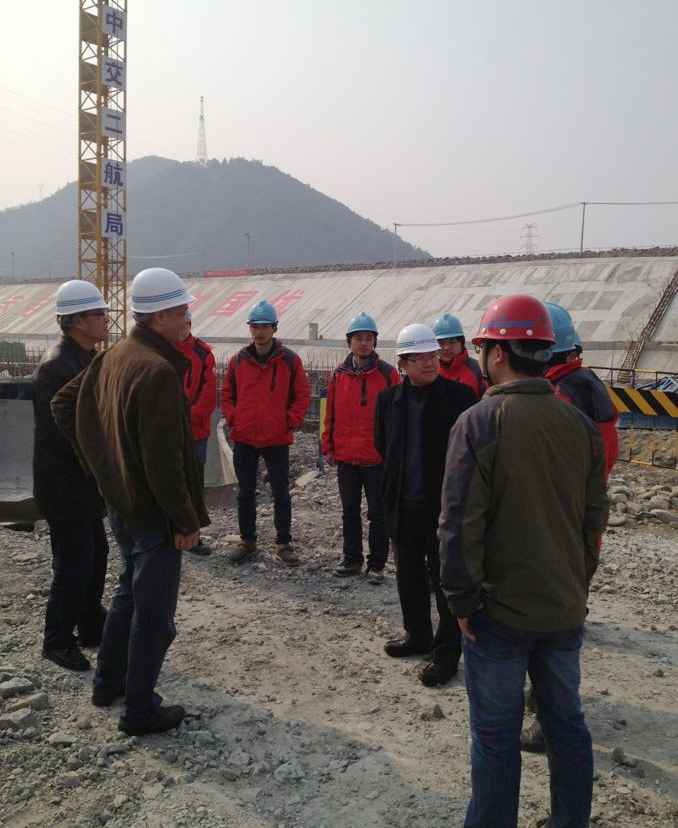 2014127,临近春节,杭州市交通运输局总工洪发生及市港航局局长杨挺理一行受局党委书记、局长范建军委派,莅临富春江船闸工程检查并慰问春节期间坚守一线的参建各方人员。