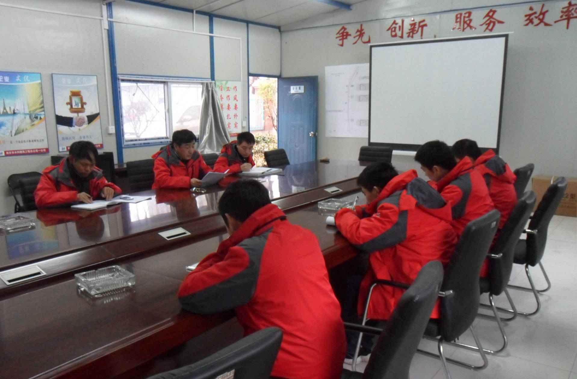 2014年2月17日下午,南京江心洲监理部利用雨雪天停工之机,由项目金总监带领监理组全体人员进行了技术学习交流活动。 首先,金总对监理人员进行了职业道德教育,并强调了监理人员职业道德的重要性。副总监罗总针对图纸答疑内容为大家进行了详细地讲解,随后专业监理工程师方工对现场施工各道工序的控制要点给大家进行详细地说明。 为了提升监理部的工作水平,强化监理人员的技术知识,监理组将每周开展一次类似的技术学习交流活动,并且对每次的学习内容进行测评考试。(郎新赟)