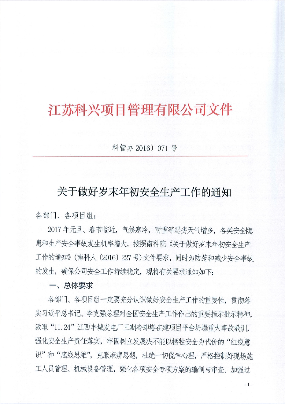 > 通知公告 > 关于做好岁末年初安全生产工作的通知