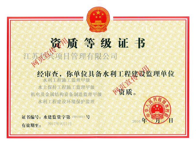 2016年年底,乐鱼官方端网站登录入口资质取得新的突破,公司成功通过了水利部水土保持施工监理、机电及金属结构设备制造监理2个专业乙级升甲级的资质申报工作。目前,公司已同时具有水利施工监理等3个甲级监理资质,以及一个环境保护不定级监理资质,达到了水利监理行业资质的全部最高级。加上交通运输部水运工程和公路工程2个甲级监理资质,公司目前已具有了5个专业的甲级监理资质。 公司水利资质的提升将进一步提高公司综合实力和市场竞争力,为公司发展再上新台阶奠定好的基础。 |
