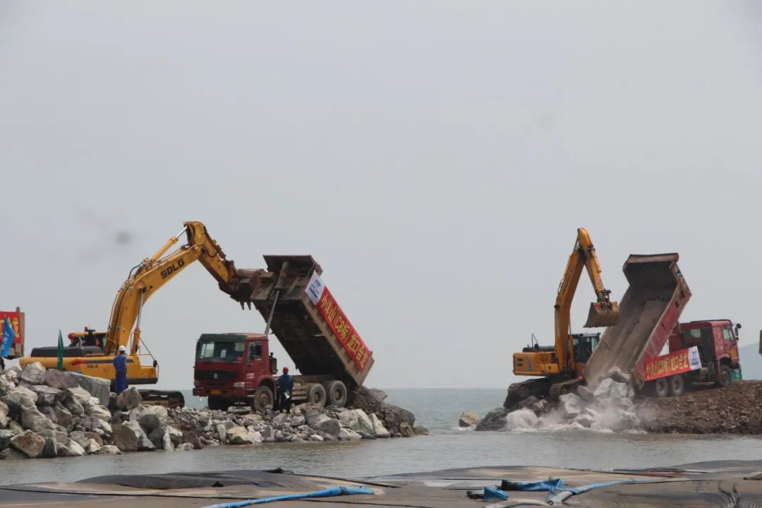 2020年9月12日上午11时,随着自卸车将最后一满车石料倒入龙口,由江苏乐鱼(中国)项目管理公司承担项目管理任务的小洋山围垦一期工程Ab区海堤提标及场地吹填工程促淤潜堤顺利合拢,标志着项目在经过各参建方近一年的艰苦奋战后取得了阶段性成果。